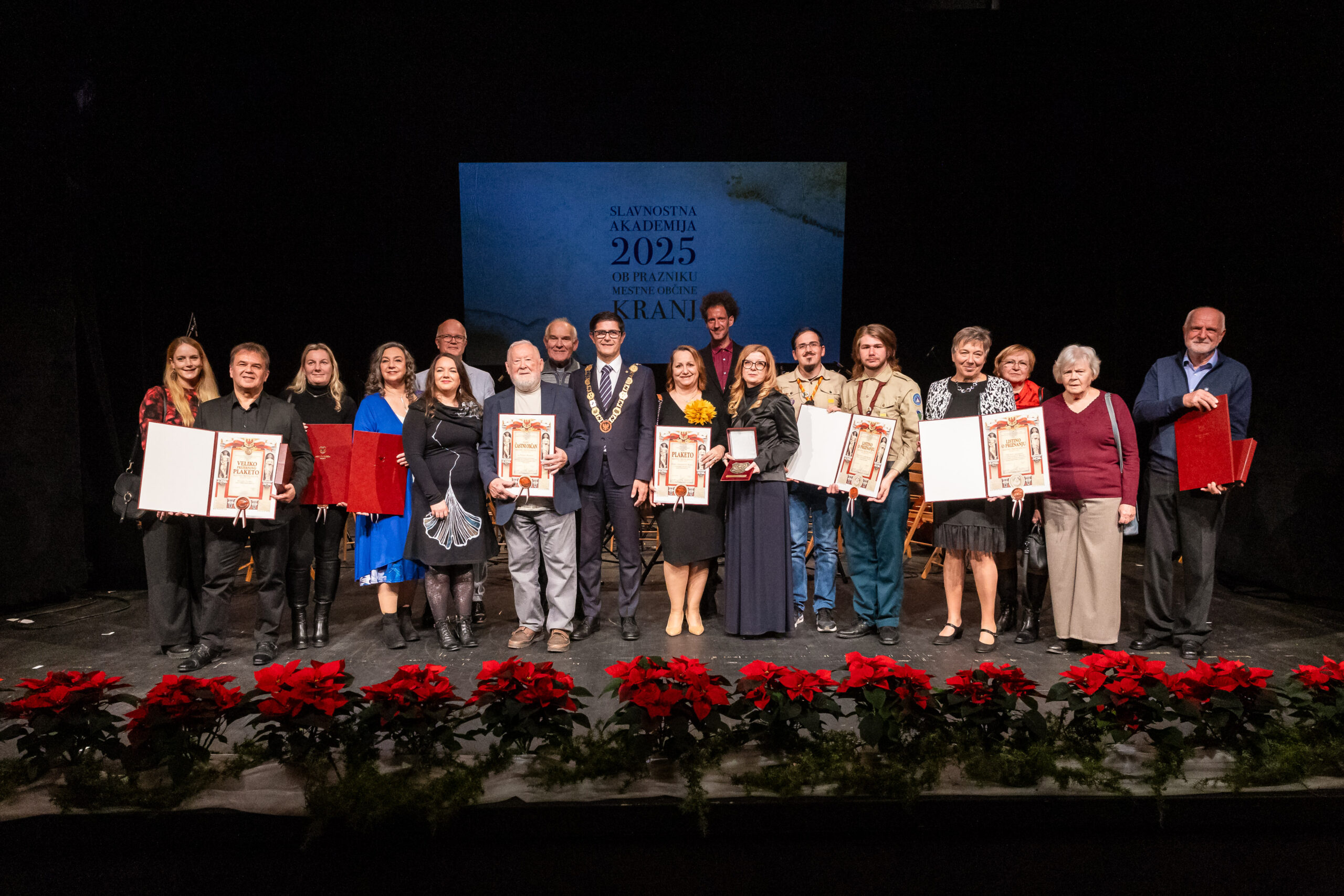 Mestna občina Kranj (MOK) na predvečer občinskega praznika tradicionalno pripravi slavnostno akademijo, na kateri podeli priznanja in plakete tistim, ki so najbolj izstopali v tekočem letu. Ob verzih Prešernove Zdravljice je župan MOK Matjaž Rakovec poudaril, da so letošnje nagrajenke in nagrajenci srce in duša mesta, ponos občine, njeno upanje in zgled: »Delati dobro za skupnost, je tisto, kar povezuje vse vas. Nesebično pomagate drugim, jih rešujete iz zahtevnih situacij, skrbite za prepoznavnost našega mesta, širite ljubezen, strpnost, dobro voljo, povezujete ljudi v skupnost, vzgajate mlade rodove in širite veselje do življenja,« je v nagovoru poudaril župan Matjaž Rakovec.